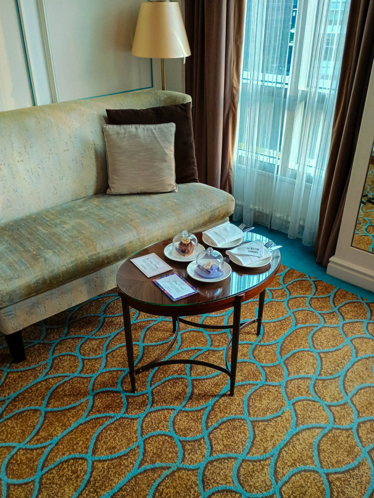 I stayed in the Classic King Room, a tastefully appointed space approximately 32 m² in size. Floor-to-ceiling windows flood the room with natural light and offer lovely city views as well as a view over the pool area below. The décor reflects the cultural heritage of the Straits Chinese (Peranakan), with fresh tones, elegant furnishings, and subtle design details echoing this tradition.